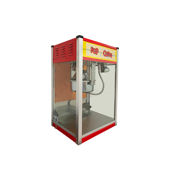 Cotufera profesional con recipiente de 12 onzas y estructura fabricada en perfil de aluminio y vidrio de alta resistencia. Funciona a 110V con una potencia de 1.4 kW, presentando un diseño robusto de 38 kg y medidas de 500 x 410 x 790 mm. Ideal para uso comercial continuo gracias a su eficiente rendimiento térmico.