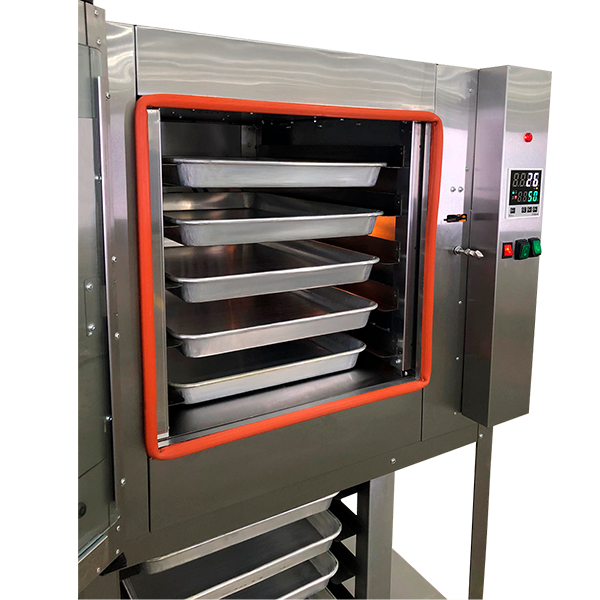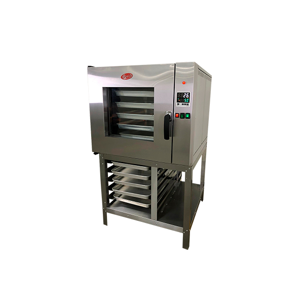Horno de convección de 5 bandejas con estructura de acero aluminizado y acabados en acero inoxidable. Opera a 220V con una potencia de 4000W, incluyendo puerta de vidrio templado y una separación de 96 mm entre niveles. Sus dimensiones exteriores son de 1492,45 x 866,50 x 1102,55 mm.